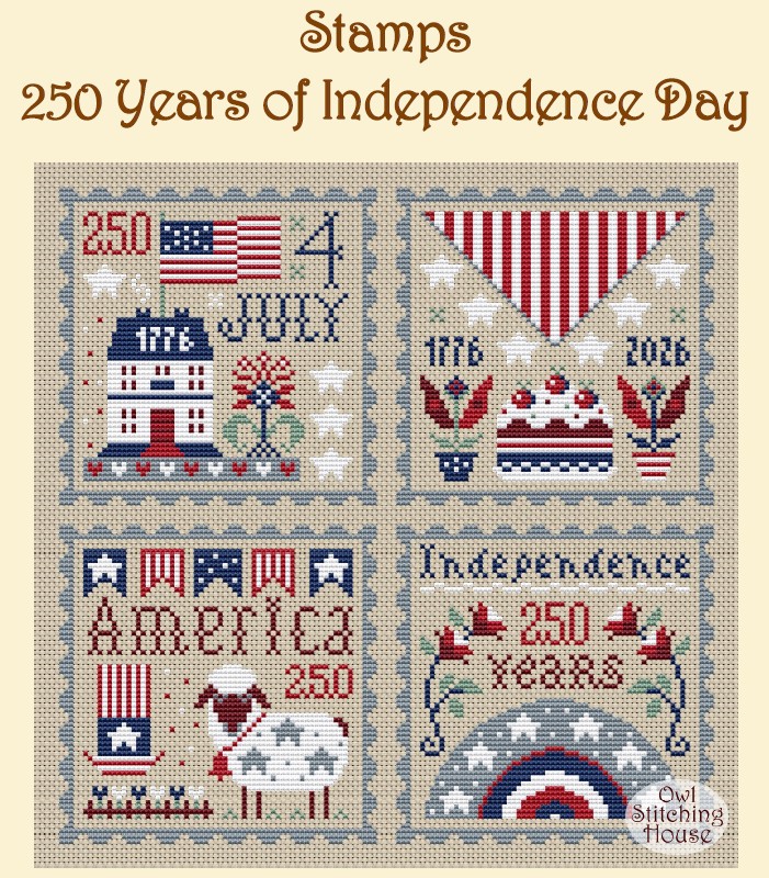 As you may have seen in yesterday’s post, I have resolved to complete at least one patriotic cross stitch pattern per month in 2026 to celebrate America’s 250th Birthday. Lindsey M. Weight of Primrose Cottage Stitches is one of my favorite designers and she has quite a few patriotic cross stitch patterns and kits available. I will be doing several of them this year, including the one below:
