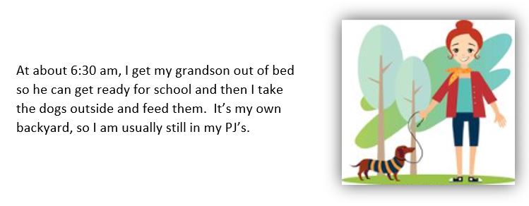 My perfect day starts with my grandson waking me up, like he usually does, by running in and jumping on my bed saying, “Good morning, Grammy, I love you!” The munchkin and I snuggle for a while before we get up and I fix him some French Toast with strawberries and bananas while he watches cartoons.